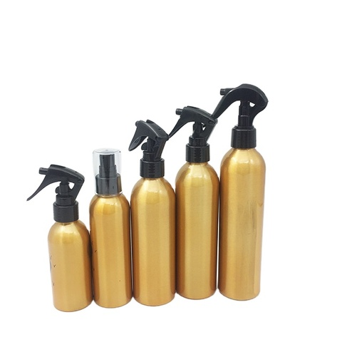 Tedarikçi OEM RTS saç için 100 doldurulabilir alüminyum şişe ile kozmetik alüminyum şişe ml altın tetikli püskürtücü